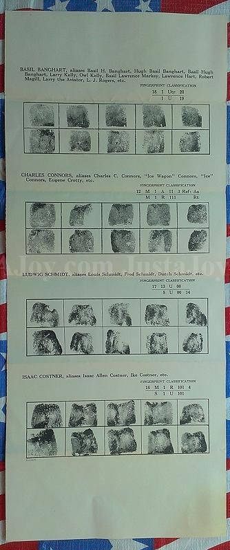 1. Basil Banghart, aliases Basil H. Banghart, Hugh Basil Banghart, Basil Hugh Banghart, Larry Kelly, Owl Kelly, Basil Lawrence Markey, Lawrence Hart, Robert Magill, Larry the Aviator, L.J. Rogers, etc. In 1933 he was 30 years old, 5' 8 7/8" tall, 138 lbs, medium build, ligt brown hair, blue eyes, fair complexion and had wrinkles across his forehead.